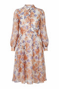 Mikael Aghal Peach & Lavender Floral Midi Dress – Long Sleeve Button Front