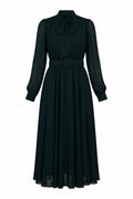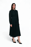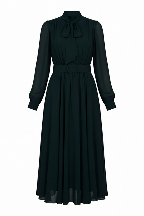 Mikael Aghal Belted Midi Dress – Long Sleeve Tie Neck